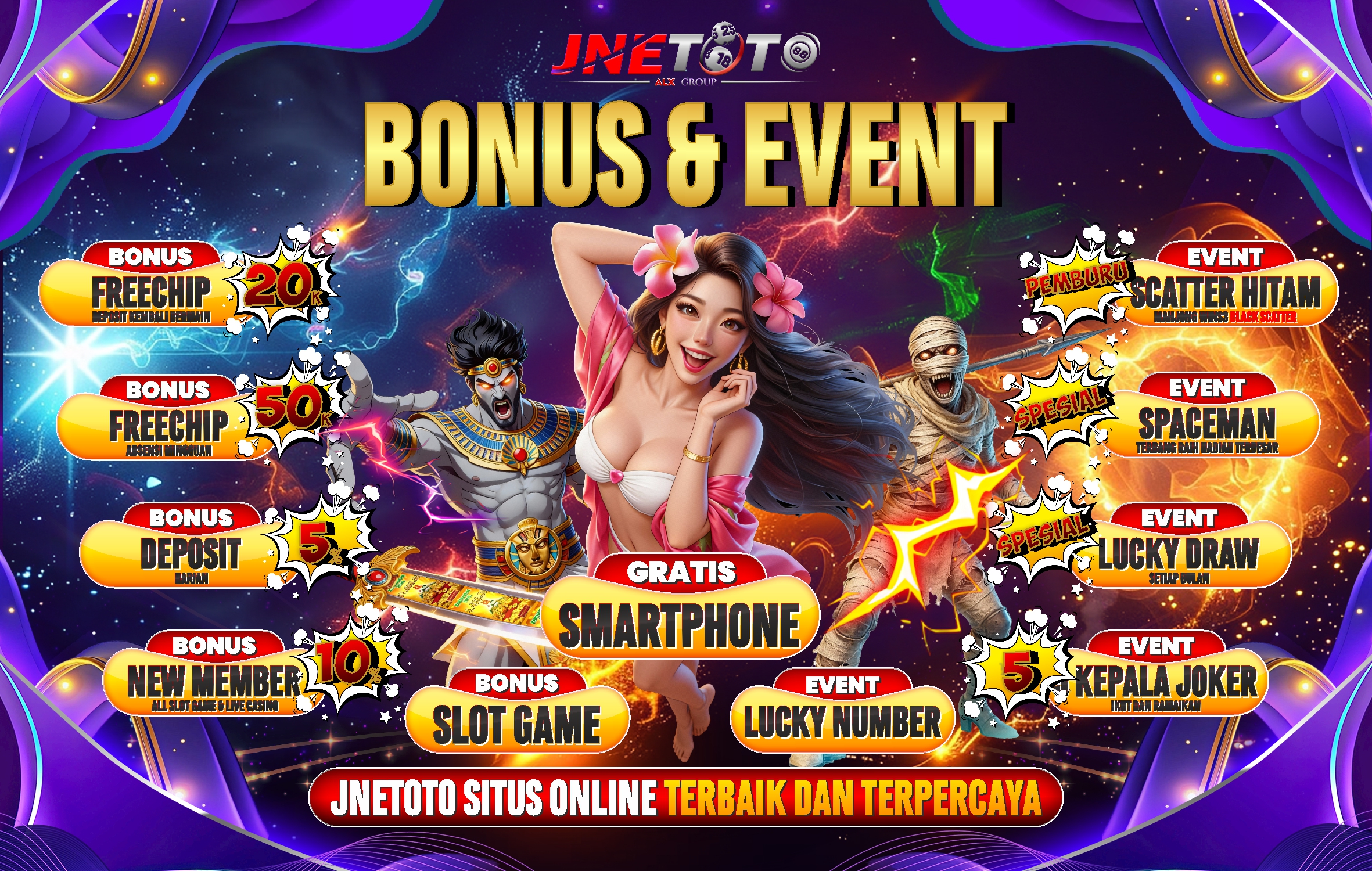 Selamat datang di JNETOTO - Bandar Togel Online, Live Casino, dan Slot Online Terpercaya. Minimal Deposit Rp5.000 | Minimal Withdraw Rp20.000 | Minimal Bet Togel 100 Perak | Minimal Bet Slot 400 Perak.